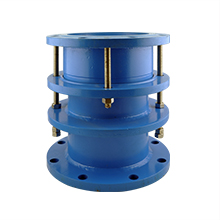 套筒式伸縮器,它由外筒和內(nèi)筒組成,外筒和內(nèi)筒的法蘭片上裝有限位桿,在外筒的內(nèi)壁上設(shè)有限位塊,外筒和內(nèi)筒之間由V型橡膠圈來(lái)密封。
